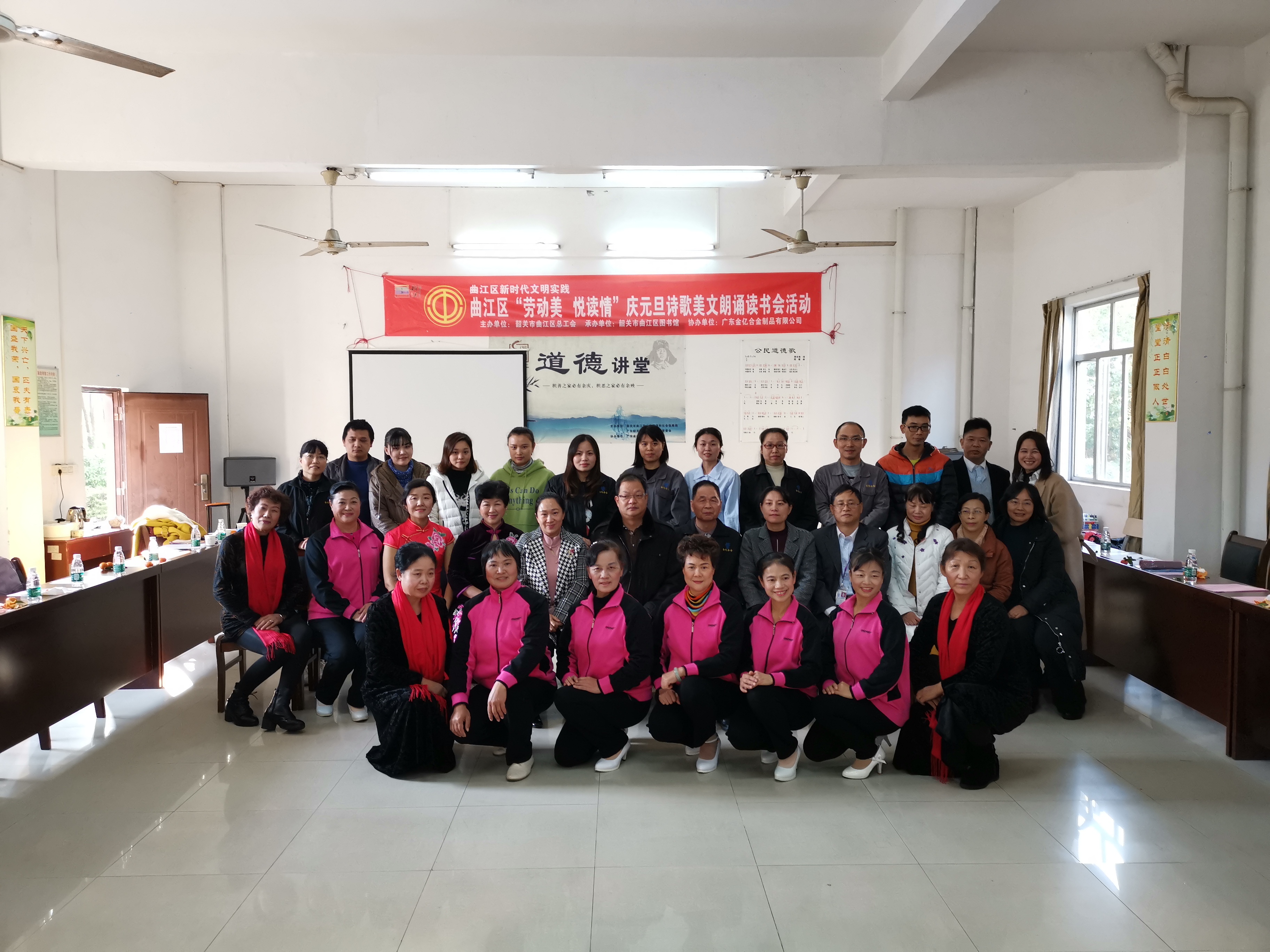由韶關(guān)市曲江區(qū)總工會主辦,韶關(guān)市曲江區(qū)圖書館承辦,我公司協(xié)辦的2019年韶關(guān)市曲江區(qū)“勞動美.閱讀情”慶元旦詩歌美文朗誦讀書會於2019年12月28日下午在我公司職工之家舉行。由公司員工和圖書館人員組成的朗誦和表演團隊,為到場的領(lǐng)導(dǎo)和公司員工帶來了精彩的演出。